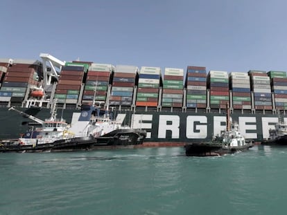 The Liberia-flagged MSC Istanbul, heading to Portugal from Malaysia, got stuck in a two-lane part of the global waterway