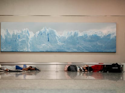 Once passengers start arriving, some of the overnighters head off to spend the day at soup kitchens, though others hang around the airport grounds begging for change at traffic lights and some stay seated in chairs blending in with the travelers