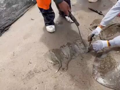 Local authorities in Huatabampo were caught on video catching the marine animals and stripping them of their spines