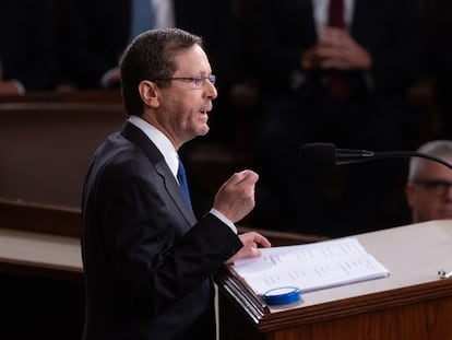 Herzog is the second Israeli president, after his father, Chaim Herzog, to address Congress. His speech marks modern Israel’s celebration of its 75th year