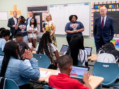 The Bidens went to Eliot-Hine Middle School, located east of the U.S. Capitol, to mark the District of Columbia’s first day of school for the 2023-24 year