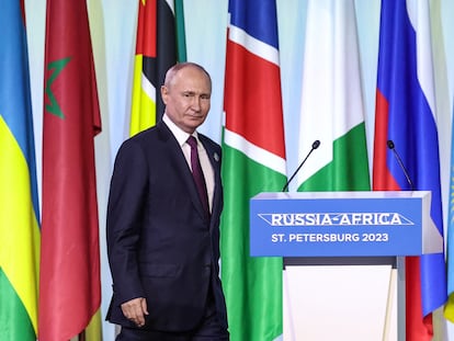 The Russian leader is trying to seduce African countries at a summit held in Saint Petersburg where the Wagner Group’s boss made an appearance