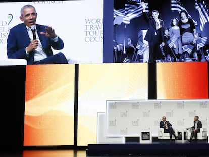 The former US president spent the morning visiting the city, where his daughter Malia lived for a few months