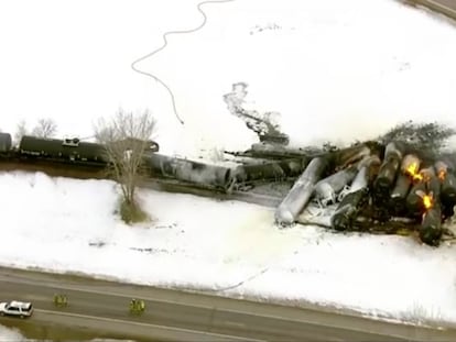 U.S. Transportation Secretary Pete Buttigieg told CNN that about 14 cars were carrying hazardous materials, including ethanol