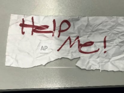 The girl was rescued July 9 in Long Beach, south of Los Angeles, after a passerby called 911 to report seeing her hold up the piece of paper with the handwritten desperate plea for help