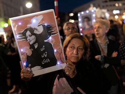 Activists in Europe mark the anniversary of Mahsa Amini’s death in police custody in Iran